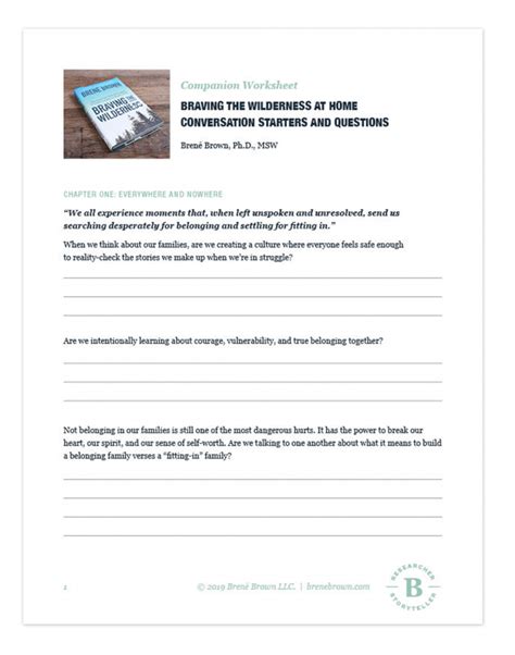 The Braving the Wilderness Worksheet is a valuable tool for individuals seeking to find peace and contentment in their lives. It encourages individuals to be honest and open with themselves, and to have compassion for their own feelings and mistakes. By understanding and accepting themselves as they are, individuals can find clarity and courage to move forward in life.